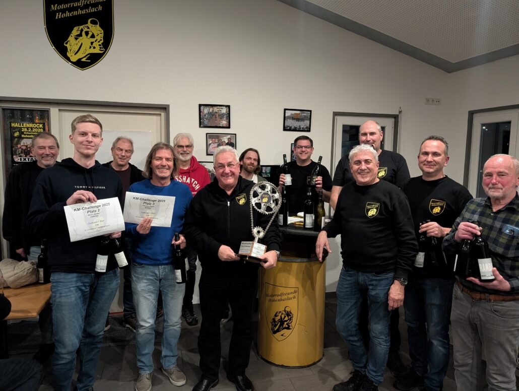 Zum Abschluss wurde das Ergebnis der Kilometer-Challenge durch Ingolf Gröner verkündet und Preise übereicht. Die meisten Kilometer mit dem Motorrad fuhr 2024 Tobias Welker (>8.600km) und sicherte sich damit den ersten Platz. Auf Platz 2 folgte Jörg Niederich, gefolgt von Hans-Günther Neumann, Sebastian Gennert und Jochen Kurz.